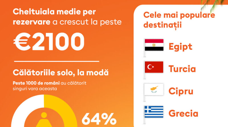 În ciuda măsurilor de austeritate, buget românilor pentru vacanțe a fost mai mare față de vara anterioară: Cheltuiala medie per rezervare a crescut la aproape 2100 de euro, subliniind o tendință către pachete superioare.
