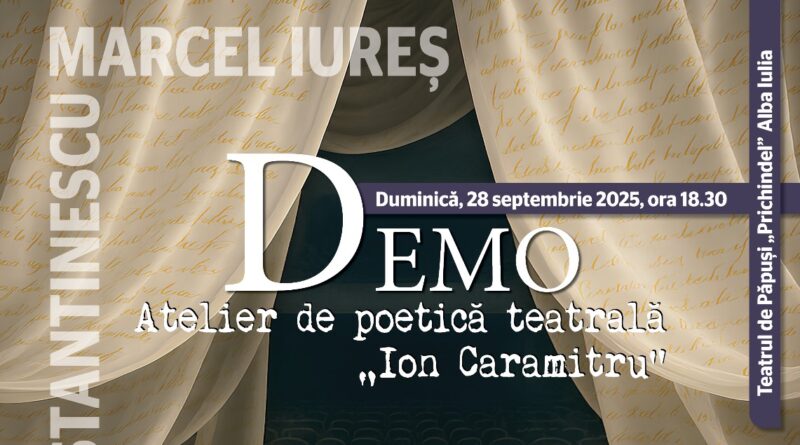 Duminică, 28 septembrie 2025, la ora 18:30, pe scena Teatrului de Păpuși „Prichindel” din Alba Iulia va avea loc DEMO-ul care încheie Atelierul de poetică teatrală „Ion Caramitru”.
