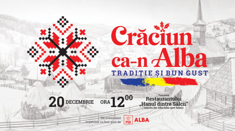 „Crăciun ca-n Alba. Tradiție și bun gust” va avea loc în parcarea Restaurantului „Hanul dintre Sălcii” (ieșirea din Alba Iulia spre Sebeș). Evenimentul este organizat cu bun gust de Partidul Social Democrat Alba.
